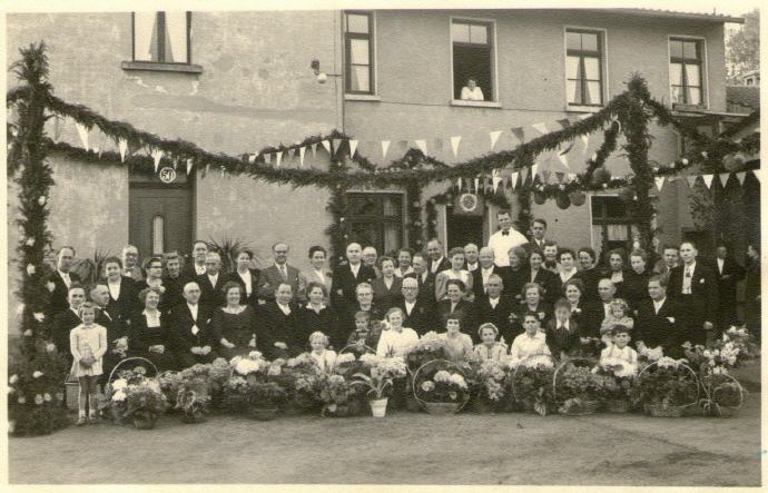 Kinder vorne v.l.Doris Selbach,Ursula Stangen,Franz Richarz jun.Marlis Selbach,Käthe Ockenfels,Else Klein,Wilhelm Ockenfels,Jürgen Arenz-Richarz,Horst Ockenfels,Gisela Richarz,v.l .sitzend.Peter Josef Schmitz,unbk.,Else Schmidt,geb.Richarz,Ottersbach -Bruderschaft Odd.Clara Klütsch Düsseldorf geb.Richarz,Adam Richarz,Christina Stangen,Katharina Richarz geb.Kauert,Wilhelm Richarz,Lisbeth Ferdinand,Franz Kauert,Maria Ockenfels, geb.Richarz,Margarethe Klein,geb.Richarz,Josef Richarz,Franz Richarz sen,v.l.stehend,Paul Ließem,Klütsch aus Rheinbach,Christian Unkelbach Freund Jubilar,Maria Schwarz,geb.Klütsch,Margarethe Hüttemann,Lenz-Reifen-Lenz Bonn,Stephan Klütsch Düsseldorf,Finchen Kauert,Heinrich Schleike Düsseldorf,Gertrud Schleike,Alois Ferdinand,Tillmann Richarz,Tillmanns Frau,Fr.Dr.Betz,unbk.Dr.Betz Basalt Union Bonn,Klara Kraut Burckner,geb.Rumler,unbk,Uli Holzapfel,Theo Richarz,Maria Rumler,geb.Richarz,Fritz Ockenfels,Lischen Holzapfel,Renate Meyer-Kindermädchen,Katharina Richarz,geb.Klütsch Rheinbach,Josofine Müller,Fr.Lenz-Reifen-Lenz Bonn,Erna Richarz,geb.Hof,Peter Klein,Josef Klein Hinten r.Boitz, Post Römlinghoven,Kaplan Reiferscheid,Fenster oben Fr.Fischer